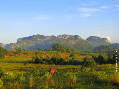 Our second week in Cuba took us to the west of the island - to Pinar del Rio province, and the town of Vinales, nestling in a gorgeous green valley that was designated a UNESCO World Heritage site in 1999. This is an agricultural area, rich in coffee, fruit and vegetables, and of course, tobacco, which is used to make fine cigars. This is a truly magical place, filled with trees, flowers and agricultural land as far as you can see.